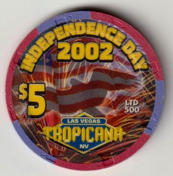 $5 Tropicana Independence Day 2002 (4th of July) Limited Edition Las Vegas, NV Casino Chip #5145 quantity