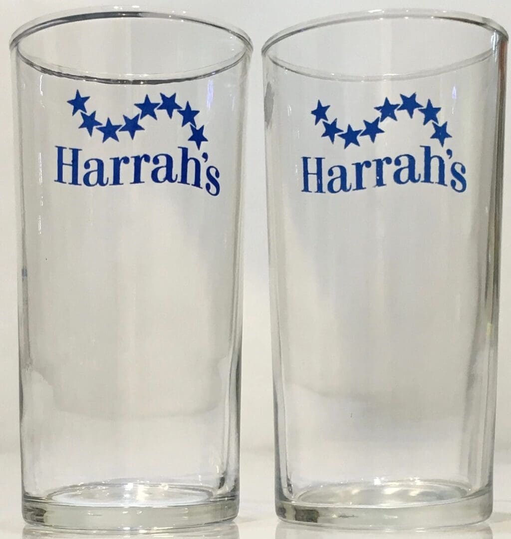 Harrah’s Reno-Lake Tahoe Casino 4.75″ Tall Cocktail Bar Glasses (Set of 2) #1966