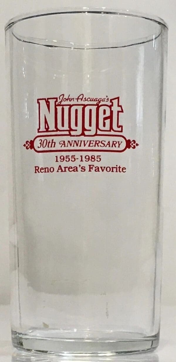 Nugget Casino 1955-1985 (30th Anniversary) Reno 4.75″ Tall Cocktail Bar Glass (1) #1959